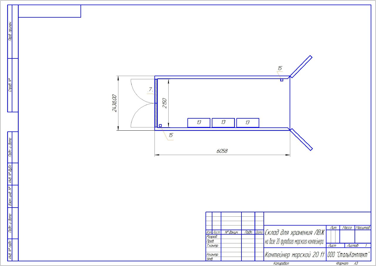 Каркас контейнера из сплошного 3 мм стального листа обеспечивает максимальную устойчивость к различным воздействиям и не подвергается деформации. Стальные лаги пола выдерживают нагрузку до 2000 кг на м². Покрытие пола – бакелитовая фанера и чистовой настил.